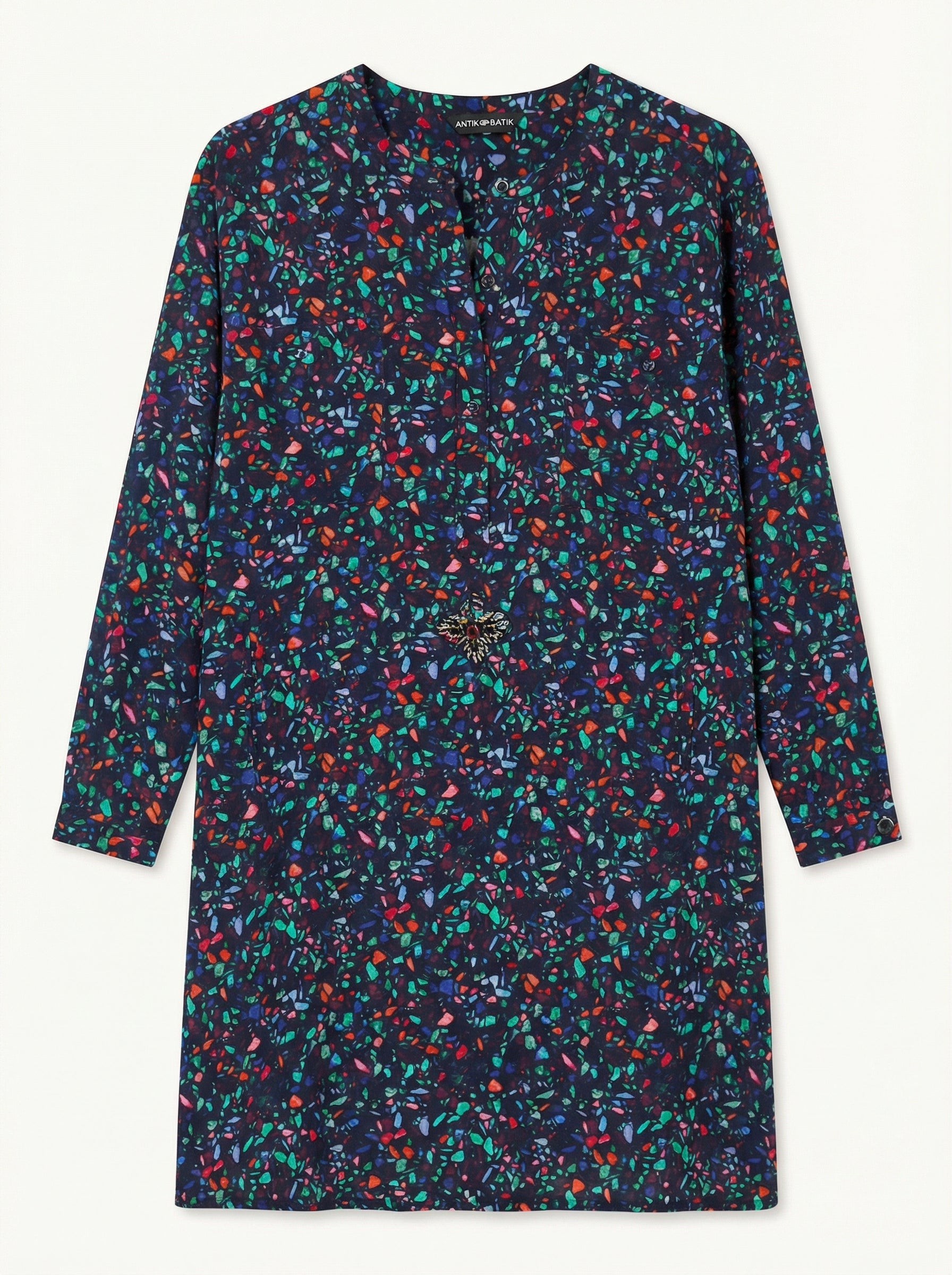 Dare to be original with this light and flowing tunic, perfect for a relaxed yet refined look. Its vibrant multicolored print brightens the soft, comfortable fabric. Featuring a comfortable fit and three-quarter sleeves, it pairs perfectly with jeans or tailored trousers for a stylish outfit in any situation.