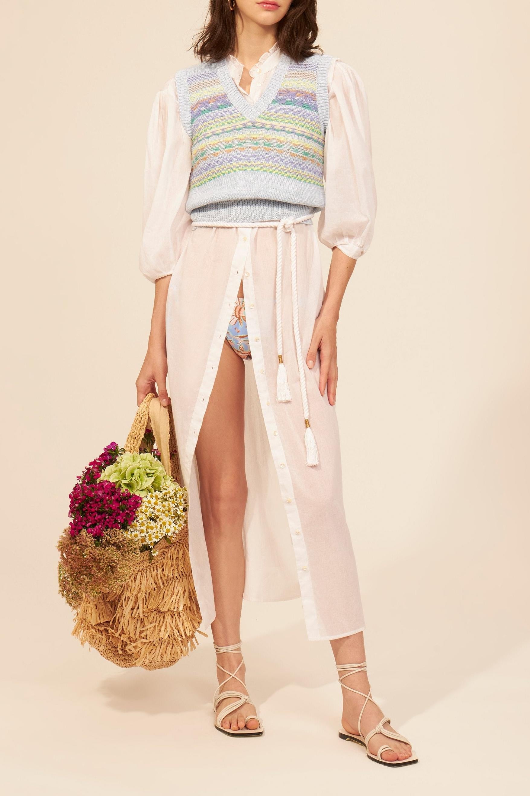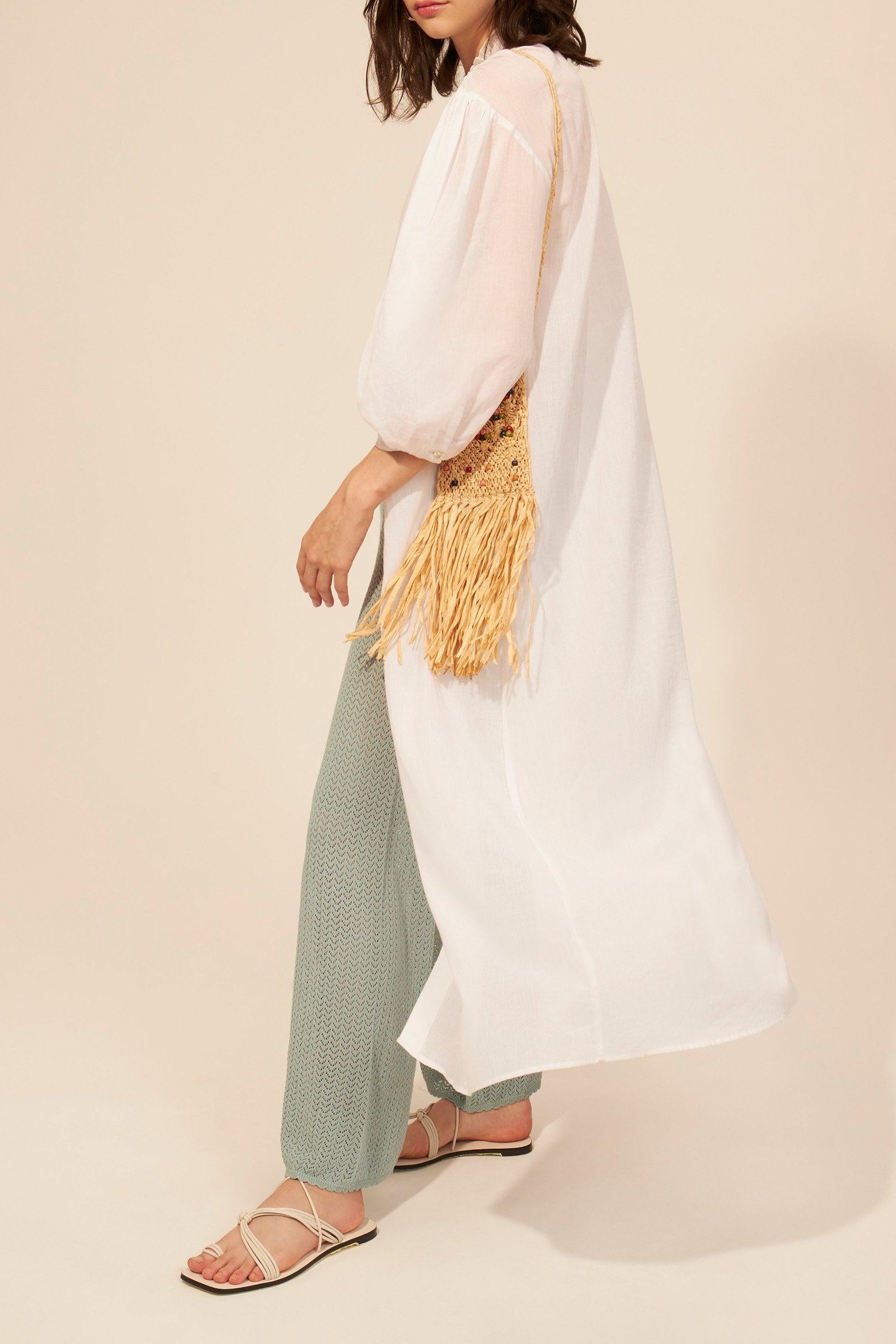 Vestido largo en voile de algodón blanco. Este vestido fluido es perfecto para usar sobre tu traje de baño favorito.