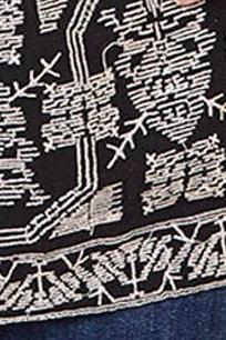 Blusa negra en algodón texturizado. Auténticos bordados negros y detalles calados en todas partes. Cuello redondo ajustable con lazos de borlas. Mangas abullonadas ajustadas en los puños. También disponible en crema. Esta icónica blusa de Antik Batik combina un bordado auténtico con un corte holgado.