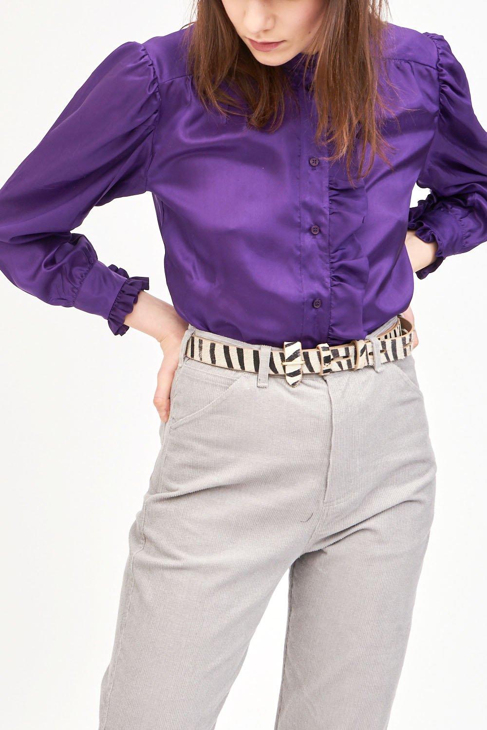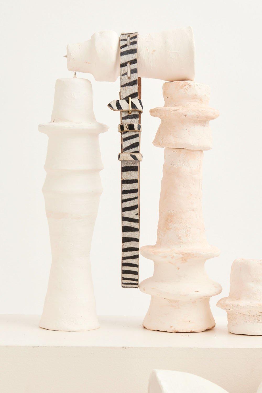 Cinturón de piel efecto “pony” con estampado de cebra. Cierre con botones a presión y hebillas metálicas. La longitud es ajustable con 5 orificios para cinturón. También disponible en negro. Ancho: 2,5 cm