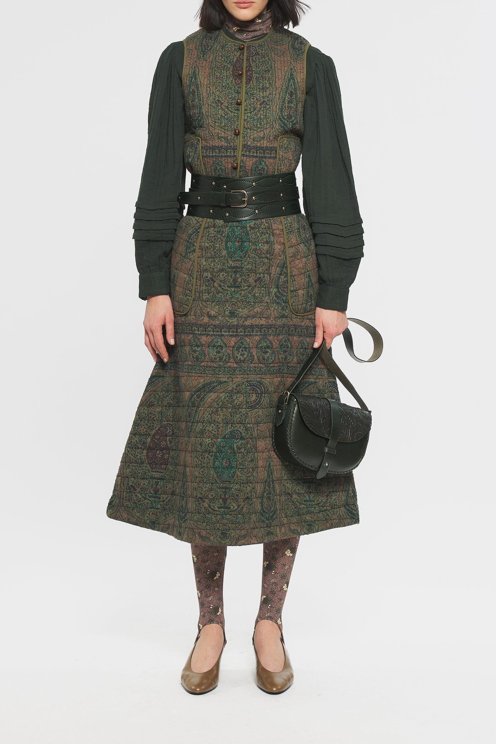 Cinturón elaborado en piel de cabra repujada. Metalistería bañada en oro. Cinturón con remaches. Cinturón ancho.