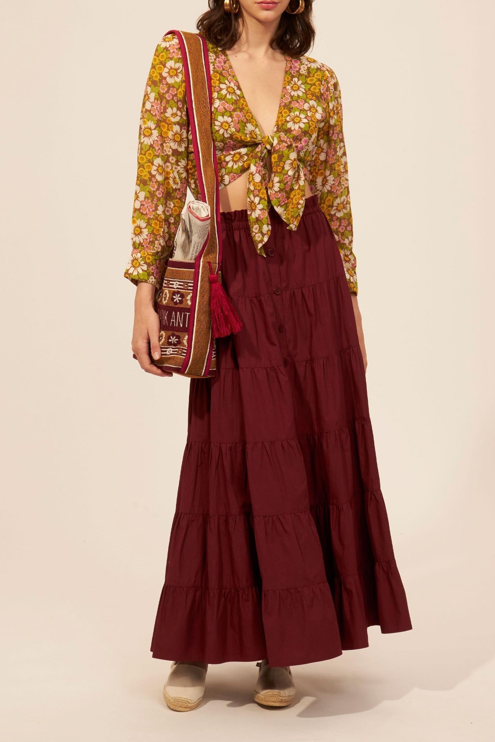 Haut court en voile de coton. Imprimé floral vintage dans des tons verts et roses.