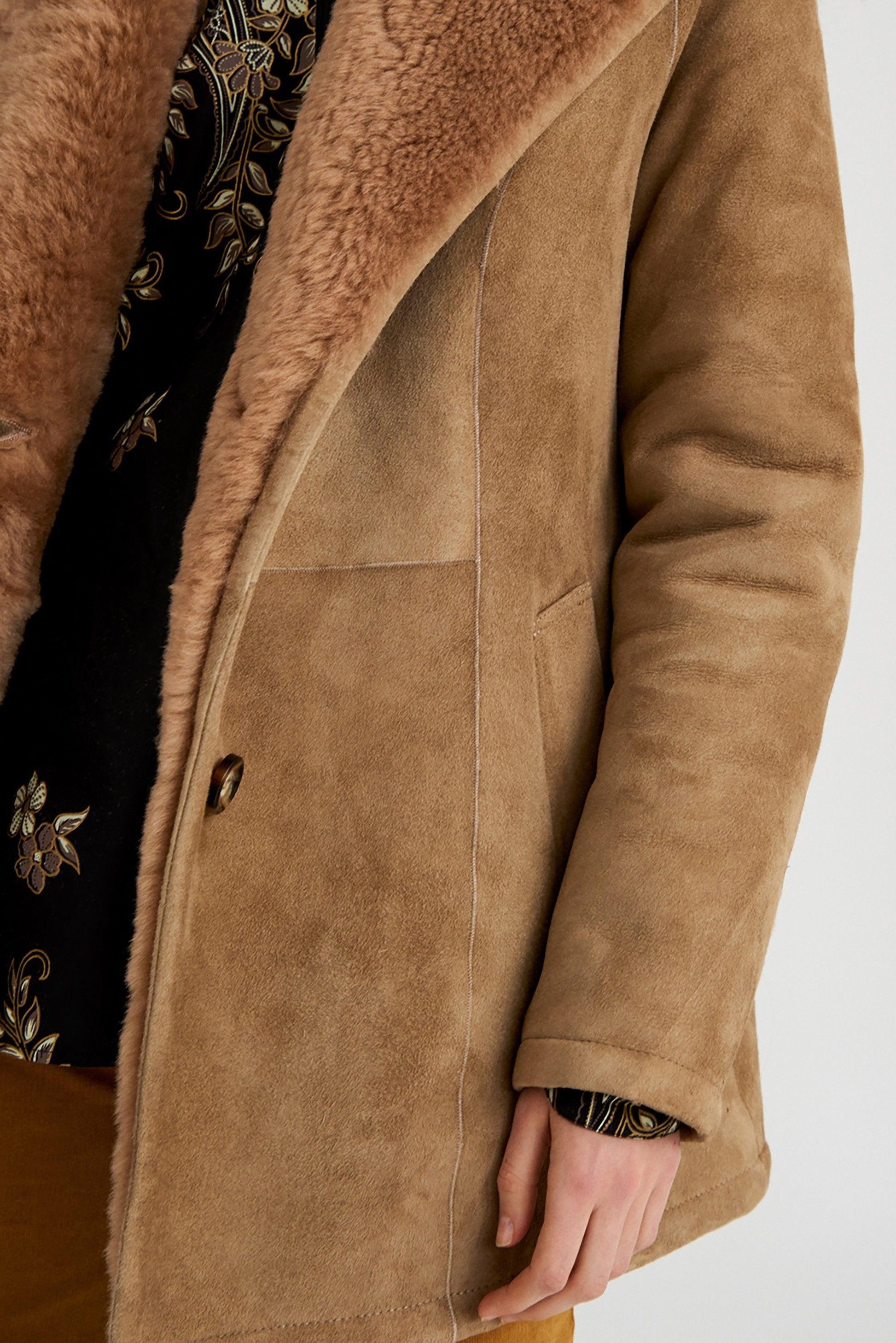 Camel-coloured suede jacket. Tone-on-tone fur lapel collar. Long straight sleeves Gold embroidery details on shoulders. Two side pockets on the front. This 70s-inspired vest has forever been one of the brand's iconic pieces. If you don't know it by now...