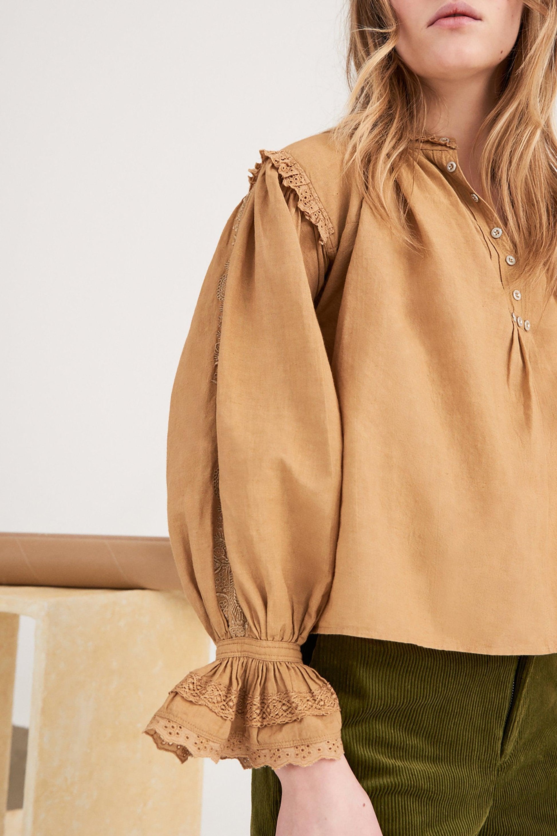 Peter Embroidered Blouse - Camel