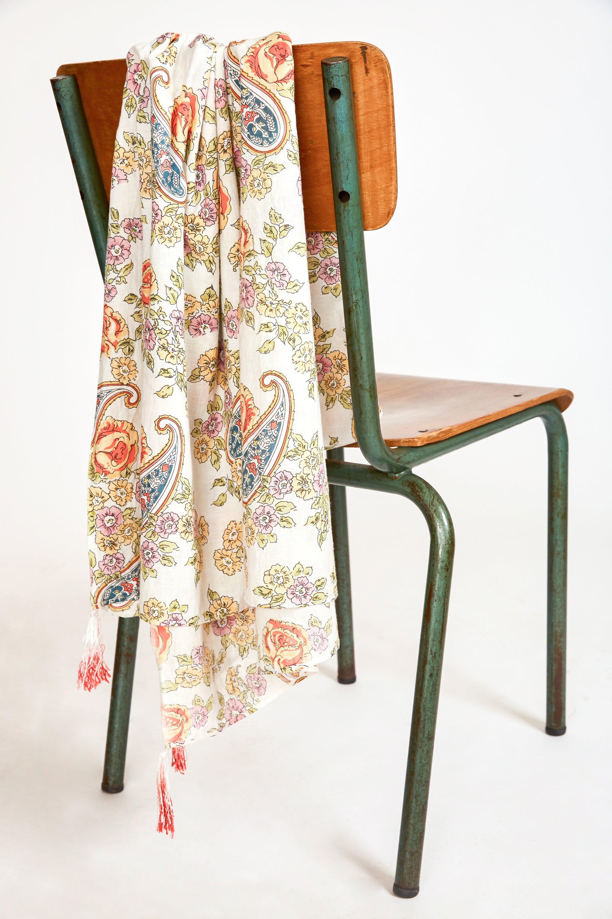 Our Vika beach pareo is printed with a blend of paisley and flowery prints on a white background. The orange hues of the prints add a joyful touch to this great beach stole. Dimensions: 114 cm x 200 cm. The Vika pareo is in cotton. This is a unique handmade piece that should require hand washing at cold temperature or dry washing.